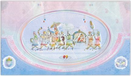 The front Multi-color picture depicts procession and is overlaid my multicolor translucent paper. The interleaf and mailing envelope too follows the overall front pattern.