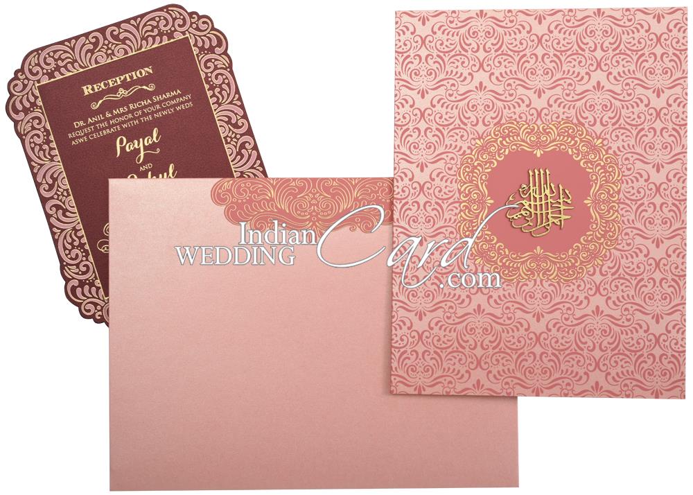 D-10282, Pink Color, Shimmery Finish Paper, Muslim Cards.