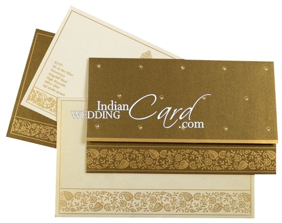 D-2634, Brown Color, Shimmery Finish Paper, Designer Multifaith Invitations, Card with Rhinestones.