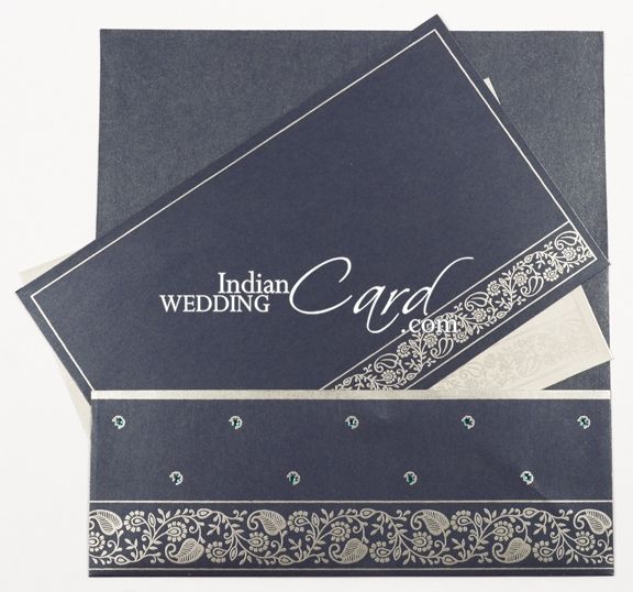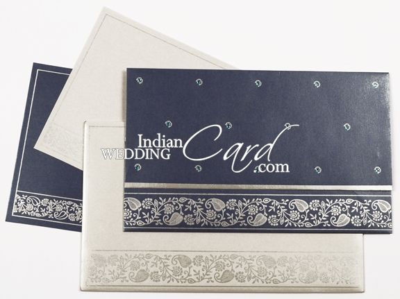 A Modern design upholding traditions! The front of this 3-fold docket style card is adored with Traditional motifs all over the front with rhinestone work adding to the beauty of the card. The bottom part has lovely and intricate border design. The inserts and mailing envelope too follow the front design with all around border and intricate design at bottom.