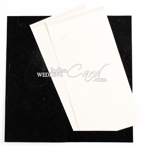 Black color silk handmade paper for docket style card. 2 inserts and mailing envelope in White color recycled handmade paper