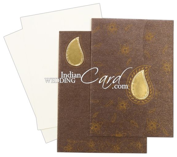 The front has floral design printed all over with center having Golden Paisley pasted. Envelope too has floral border at the bottom with golden paisley paste-up on top. Inserts are plain.